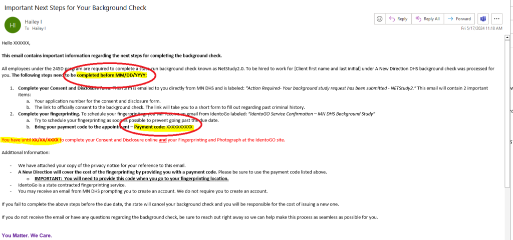 The state of Minnesota requires that all employees under the 245D program are required to complete a state run background check and fingerprinting before working. This page is meant to be a guide and resource for information regarding the background check.